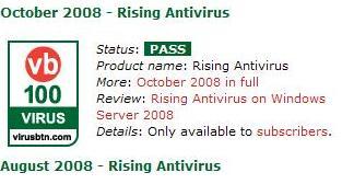 雙喜臨門 瑞星連續通過VB100和西海岸測試