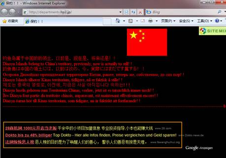 9月20日,瑞星公司發現,有人在天涯、百度貼吧等論壇發布“日本國防部網站被黑客攻陷”的帖子,在帖子里給出的網址鏈接是以“.jp”結尾的日本域名。但是,經瑞星安全專家檢查發現,該網站不過是建立在日本免費網站上的一個個人主頁,黑客用它來誘騙中國網民訪問,憑借網站上的廣告賺錢。