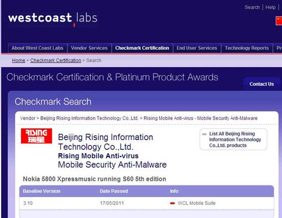 2011-05-19 13:56:10西海岸實驗室設立手機安全檢測項目 瑞星成為全球首個通過廠商