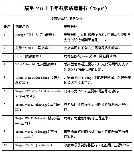根據瑞星“云安全”系統提供的數據綜合分析,2011年上半年中國互聯網安全領域呈現以下特征: