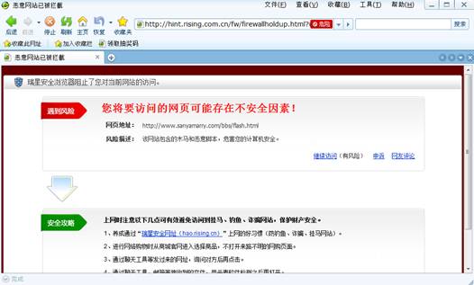 值得注意的是,當用戶通過瑞星安全瀏覽器上網遇到惡意網站時,即使未安裝安全軟件,瀏覽器也會自動攔截木馬攻擊和釣魚網站,此舉無疑為用戶上網提供了強有力的保障。