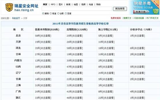 (大學(xué)列表:http://hao.rising.cn/catalog/edu.html )