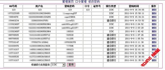 (某釣魚網(wǎng)站后臺截圖,可見其騙到的銀行帳號和密碼)