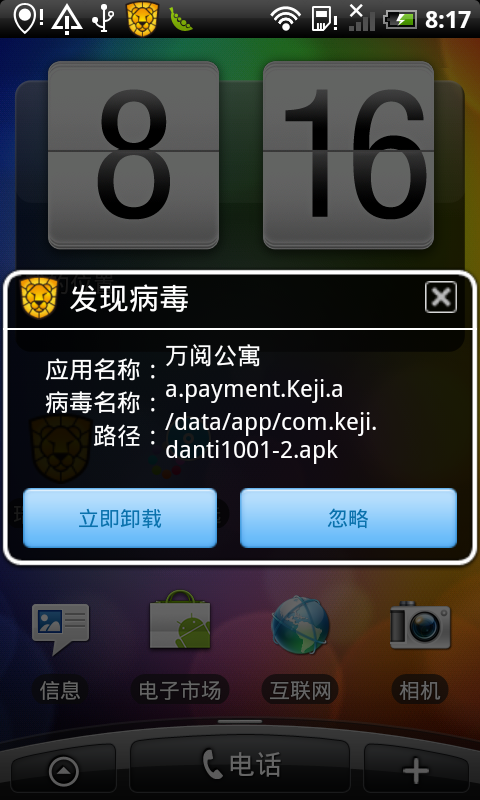 目前,永久免費的瑞星手機安全軟件已經(jīng)全面升級,用戶升級后直接使用云查殺技術(shù)就可以徹底將該病毒從手機中清除(下載地址http://mobile.rising.com.cn/)。同時,瑞星安全專家建議廣大安卓手機用戶要通過較大的軟件市場下載軟件,同時盡量不要使用破解系統(tǒng)的手機和破解軟件,在安裝軟件時,需安裝功能全面的手機安全軟件,以免遭受病毒侵擾。