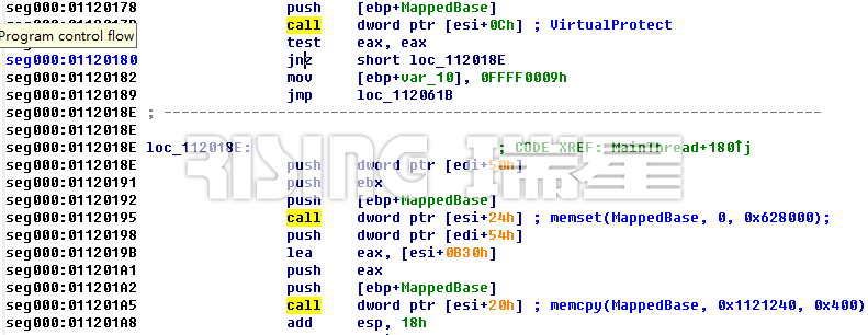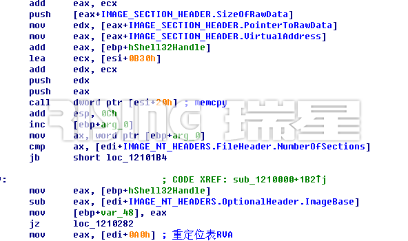 1)?通過參數(shù)指定的配置數(shù)據(jù)中找到是否要借用系統(tǒng)的shell32.dll映像名來隱藏自己,如果指定,則映射shell32.dll,并將其內存數(shù)據(jù)全部清零,將要加載的PE文件按內存粒度對齊后拷貝到shell32.dll所處的那塊內存中。