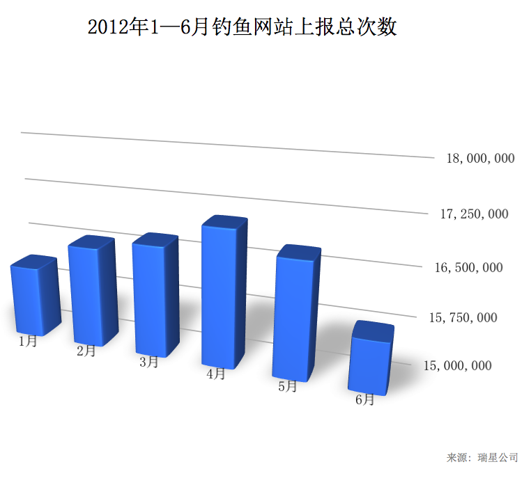 圖7:2012年1-6月釣魚網(wǎng)站上報總次數(shù)