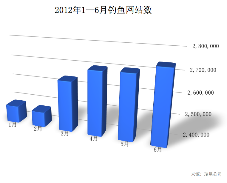 圖6:2012年1-6月釣魚網(wǎng)站數(shù)