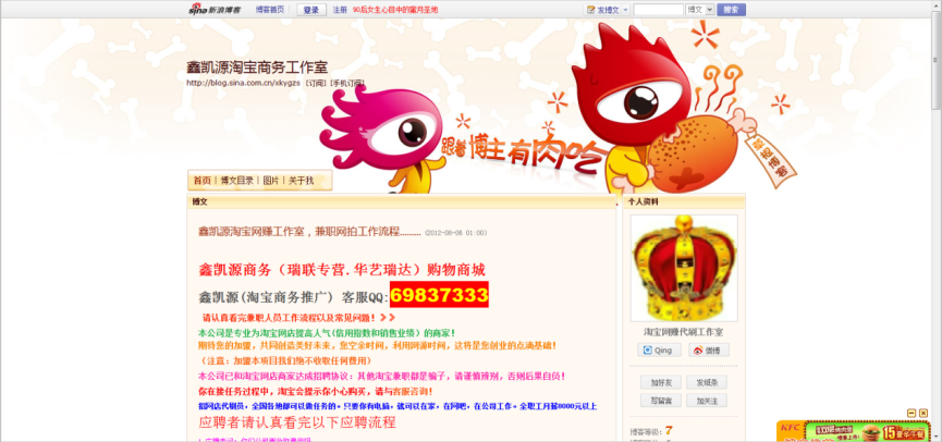 圖2:假“網(wǎng)賺兼職”的“官方博客”頁面