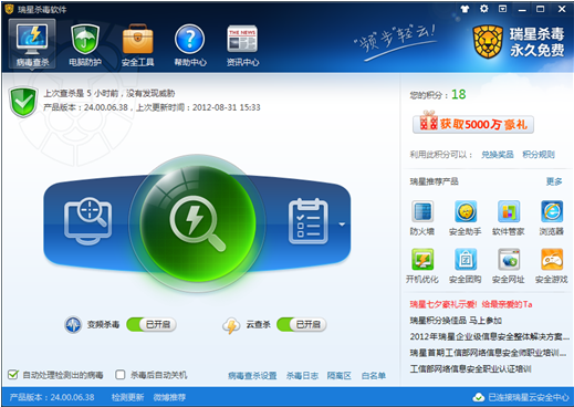 新推出的瑞星殺毒軟件V16界面清新,操作簡便易上手