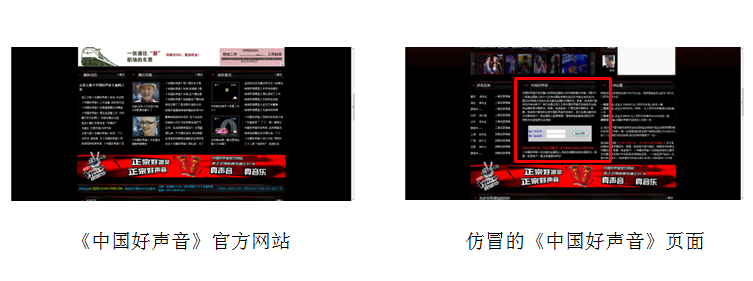 圖2:真假《中國好聲音》網(wǎng)站頁面對比