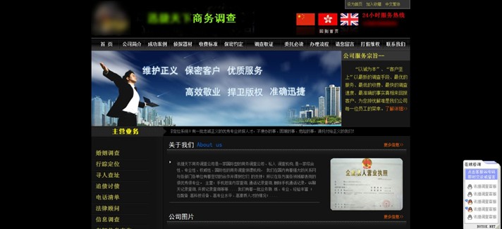 同一時間,一類以“商務調查”為名義的網站也開始進入人們的視線。這類網站打著私家偵探的旗號,向客戶提供查詢他人住址、電話、身份證號碼、戶籍、手機短信內容、通話記錄、QQ聊天記錄、開房記錄等一系列服務。與前面售賣車主信息的網站不同,這類網站不但可以提供他人的身份信息,還能根據客戶需求來提供他人的隱私信息。網站首頁上就展示了一系列該公司“專業人士”跟蹤偷拍的圖像,其中不乏一些含有不雅內容的照片。
