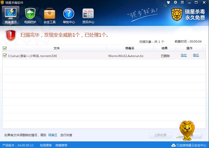 瑞星殺毒軟件V16已能徹底查殺“李安-少年派”病毒