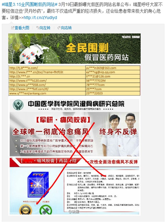 瑞星“全民圍剿假冒醫(yī)藥網(wǎng)站”微博日報