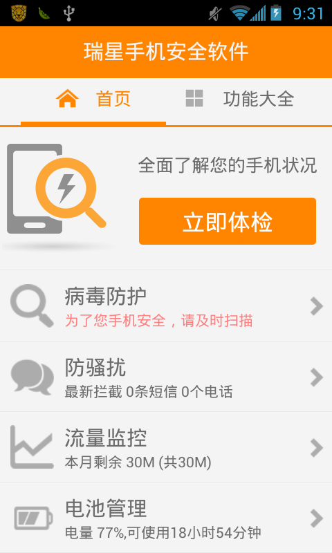 除此之外,新版的瑞星手機安全軟件還強化了病毒掃描策略,優化了監控功能和防騷擾功能,不僅提升了病毒查殺能力,同時對垃圾短信和騷擾電話的攔截也更加精準。新版的界面清新整潔,更加貼合用戶的操作習慣,大大提升了用戶體驗。