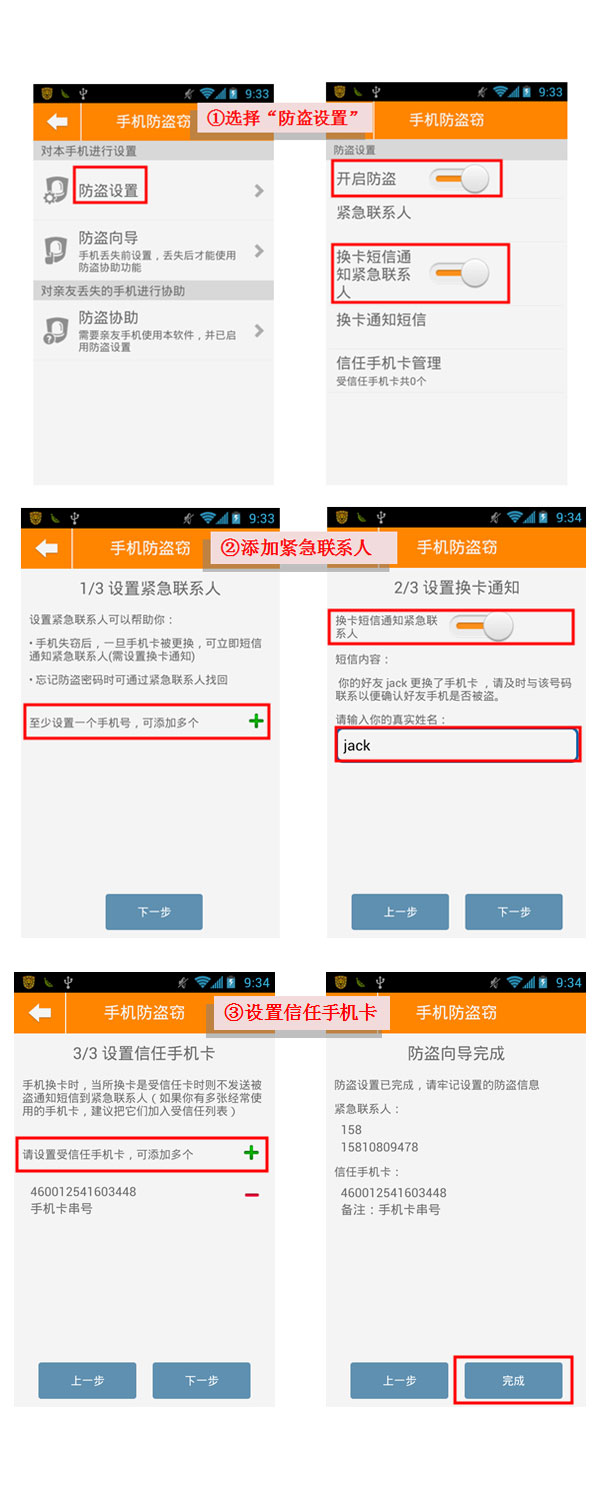 圖2:經過幾個簡單的步驟,就完成了對瑞星手機安全軟件防盜功能的設置