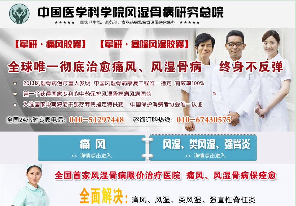 圖1:假冒的“中國醫學科學院風濕骨病研究院”官網,結果卻是出售假藥