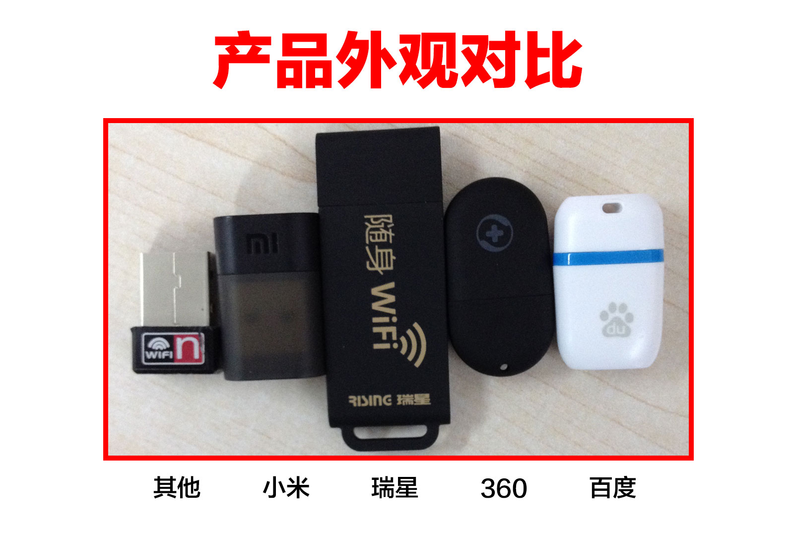從對比圖中可以看出,瑞星安全WiFi尺寸最大,而某雜牌WiFi最小。