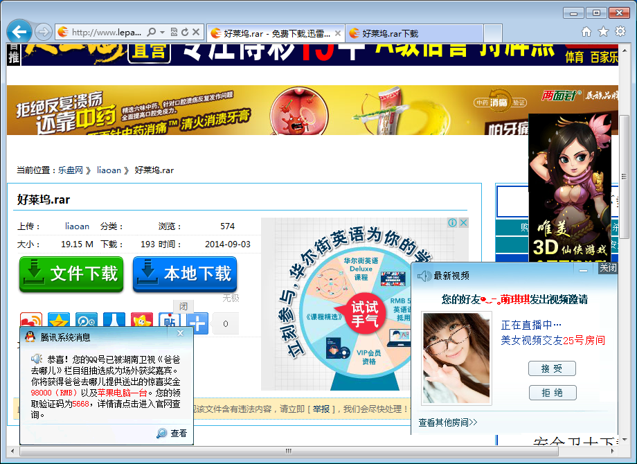 圖1:搜索“好萊塢”文件遭遇釣魚網(wǎng)站和惡意彈窗
