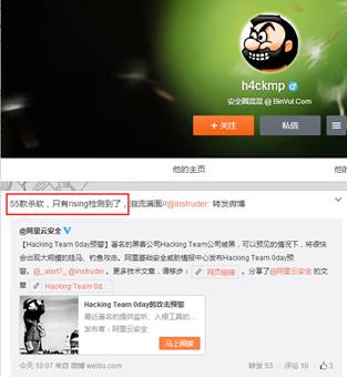 7月8日,安全圈某知名人士進行檢測,發現55款殺毒軟件中,只有瑞星殺毒軟件可以檢測并查殺此次Hacking Team被公開的漏洞。