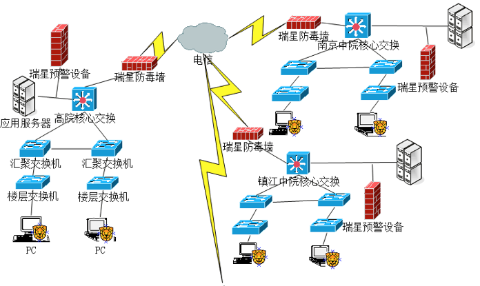 瑞星公司針對法院系統(tǒng)分支單位網(wǎng)絡(luò)之間防護(hù)設(shè)備缺失、現(xiàn)有防病毒軟件存在監(jiān)控盲點(diǎn)、現(xiàn)有的防病毒沒有形成體系等問題,提出了相應(yīng)的解決方案。對于要求單一防病毒功能的省市級單位和兼顧要求具有其它功能的區(qū)縣單位,分別部署不同類型的瑞星防病毒軟件和防毒墻以及瑞星安全預(yù)警系統(tǒng)。其中,瑞星UTM防毒墻是集防火墻、反病毒、防掛馬、VPN、IPS、Web內(nèi)容過濾、內(nèi)網(wǎng)管理及流量控制等功能于一身的具備高性能和高穩(wěn)定性的網(wǎng)絡(luò)安全產(chǎn)品;導(dǎo)線式防毒墻能實(shí)時捕獲網(wǎng)絡(luò)中傳輸?shù)乃袛?shù)據(jù)流,對實(shí)時傳輸?shù)臄?shù)據(jù)流進(jìn)行病毒檢測,全面檢測已知和未知的各種病毒;網(wǎng)絡(luò)安全預(yù)警系統(tǒng)則能夠?qū)ο到y(tǒng)內(nèi)的防病毒產(chǎn)品和病毒日志進(jìn)行整合并建立統(tǒng)一的報(bào)警機(jī)制和響應(yīng)機(jī)制,保證網(wǎng)絡(luò)安全可靠地運(yùn)行。